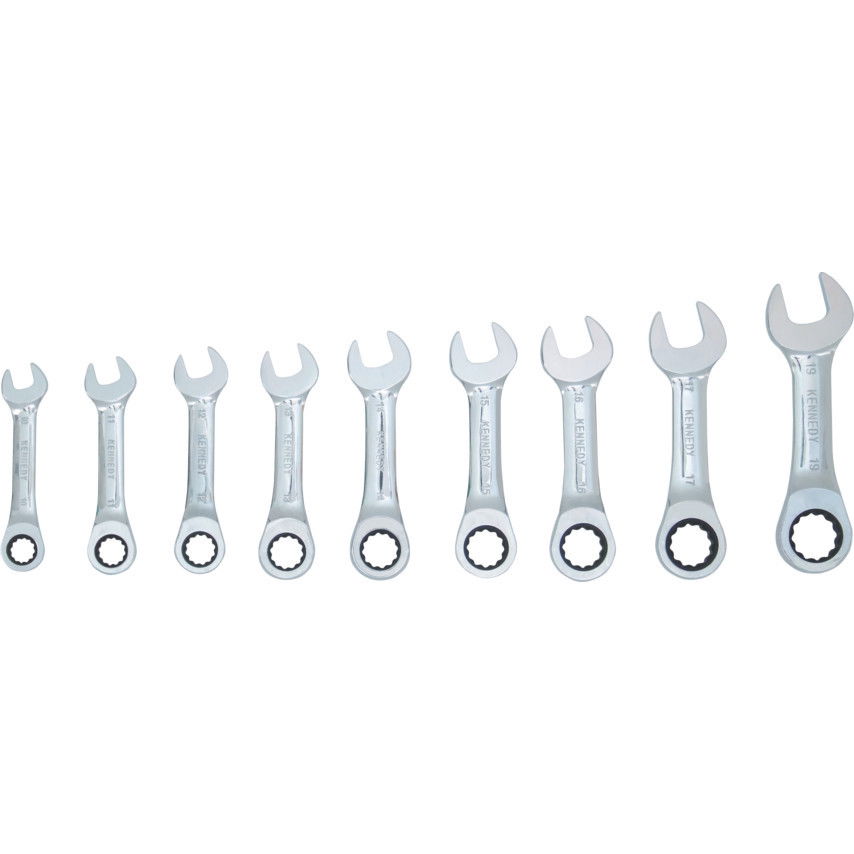KENNEDY 10 - 19 mm rövidszárú racsnis csillag-villáskulcs készlet, 9 részes