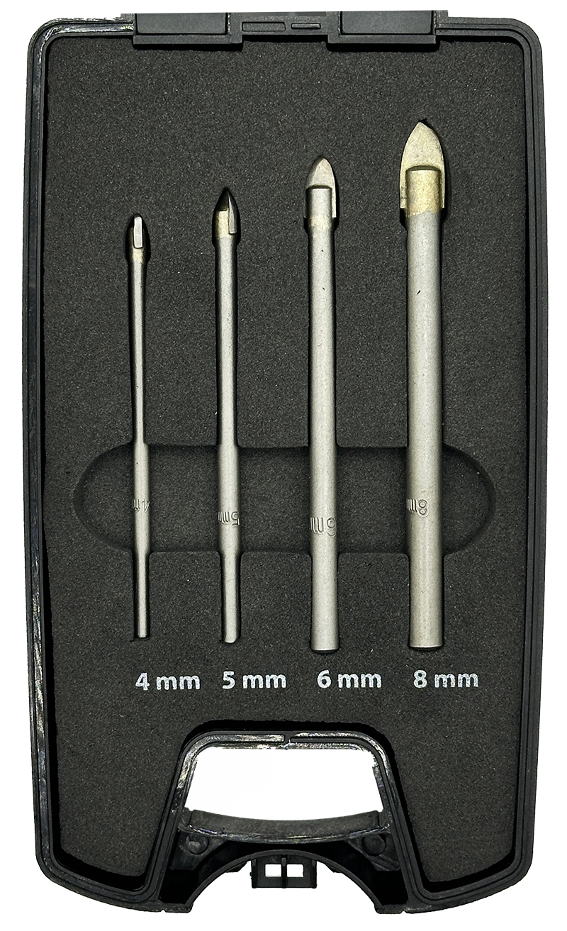 Abraboro Hengeres szárú üveg- és csempefúró készlet, 4 részes