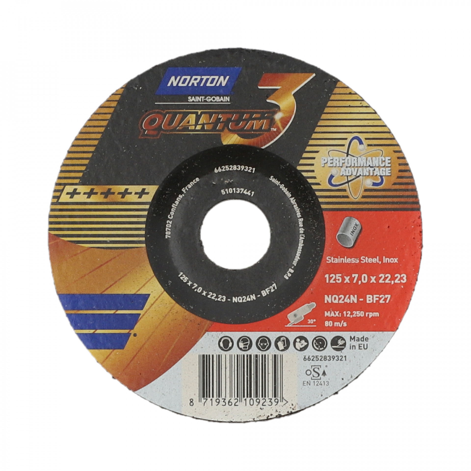 Norton Quantum 3 inox tisztítókorong 125x7,0x22,23mm, 10 db/csomag